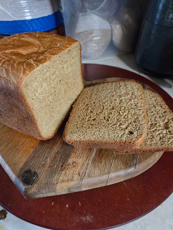 Something different I wanted to share. This is a bread machine recipe, but if someone with more baking skills than I have wants to try converting it, go right ahead. It's a nice fall bread, although obviously you can make it any time. The recipe is about 50% a recipe I found somewhere and 50% trial and error on my part. (Please respect the recipe! When I say "trial and error" I do mean it, especially the "error" part.)